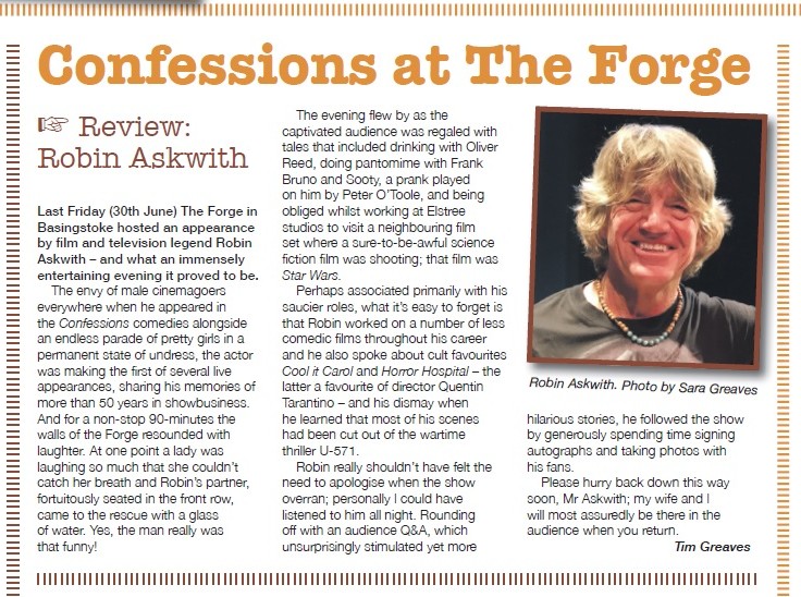 Event: Robin Askwith – An Evening With Tables & Chairs – October 2017