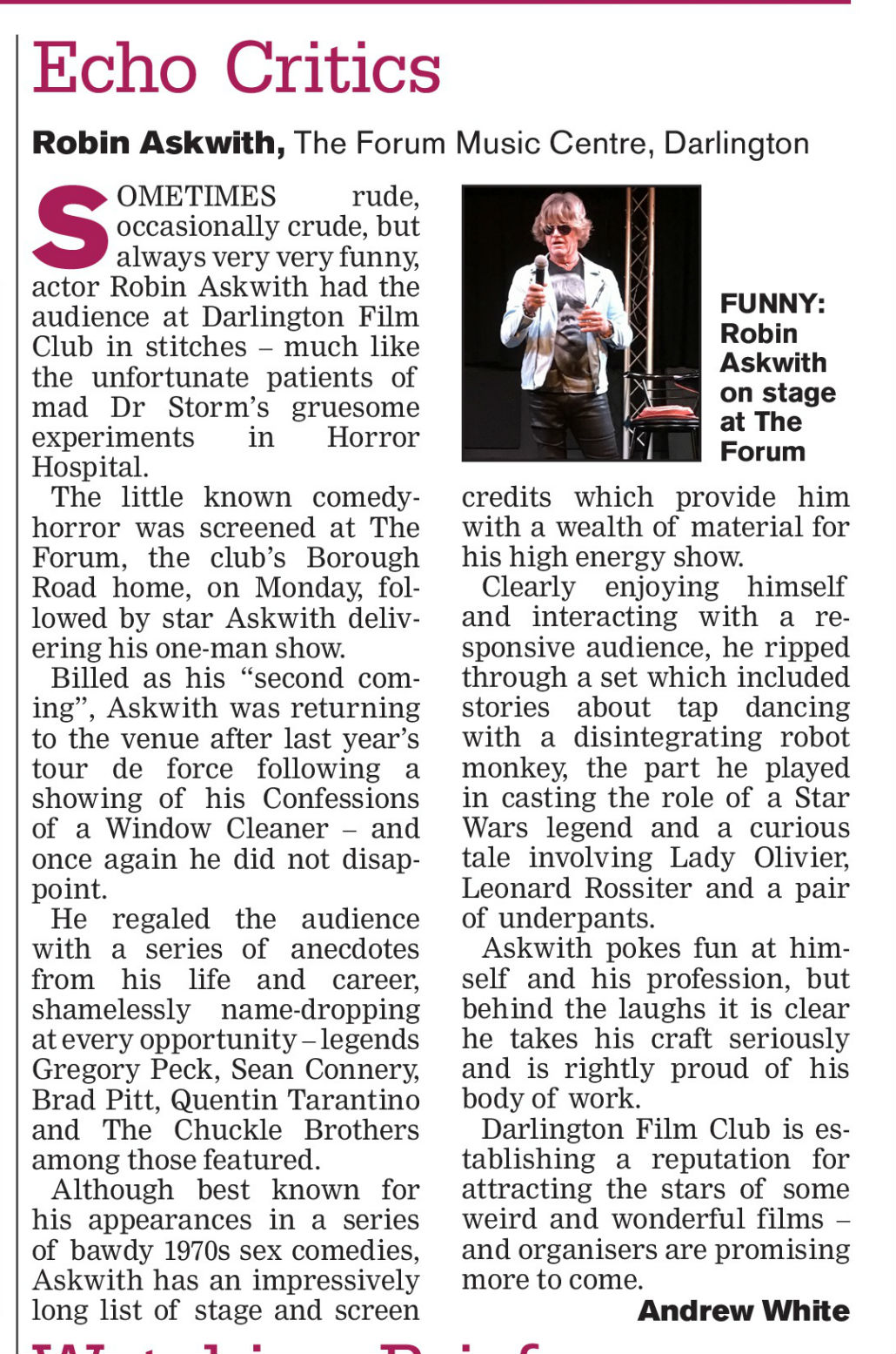 The evening will be introduced by Misty Moon’s El Presidente Robin Askwith and the Q&A after the show will be hosted by our resident MC Linda Regan.