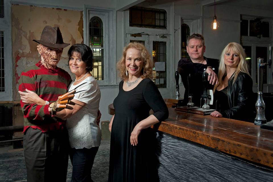 Happy Halloween From The Misty Mooners. Freddy, Sally Geeson, Rutanya Alda, The Curator & Jen Morriss. Photograph by John Chase