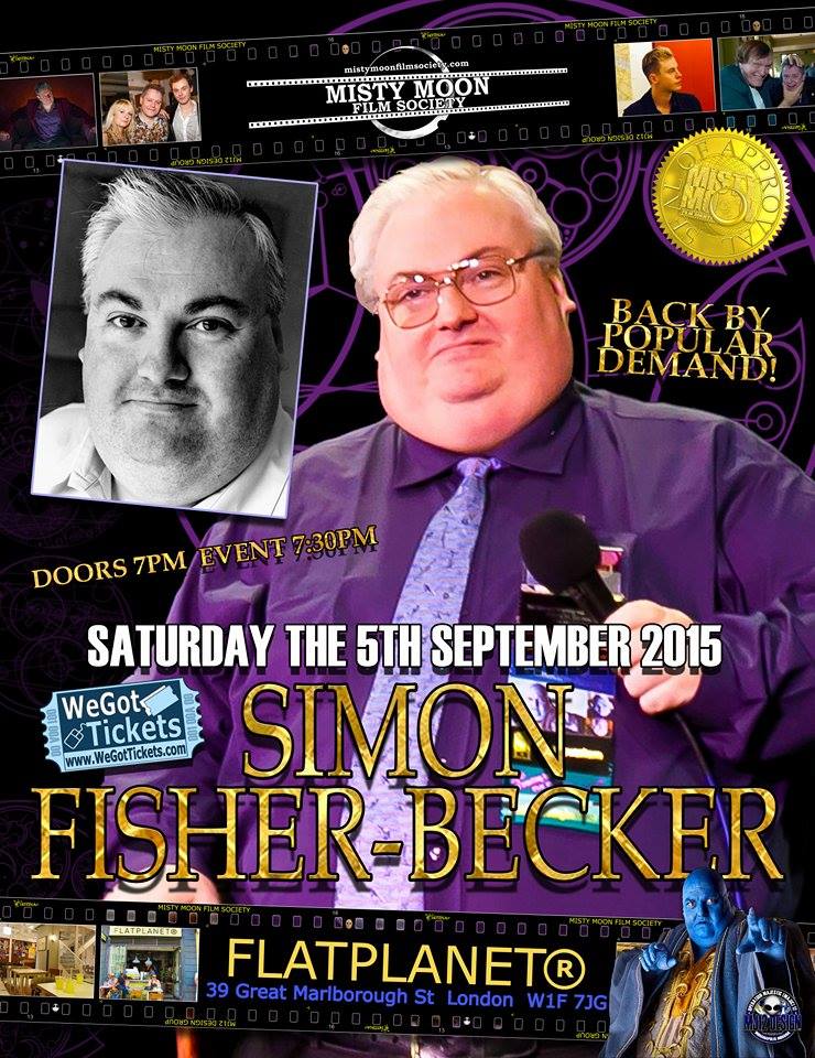 Back by popular demand Doctor Who favourite Simon Fisher-Becker opens The Misty Moon Film Society’s Autumn Season on Saturday the 5th September @ FlatPlanet, 39 Great Marlborough Street, W1F 7JG. Simon will be regaling us with stories of his career at an intimate Q&A with our outrageous MC Chris Collins. Doors 7pm Event 7.30pm.